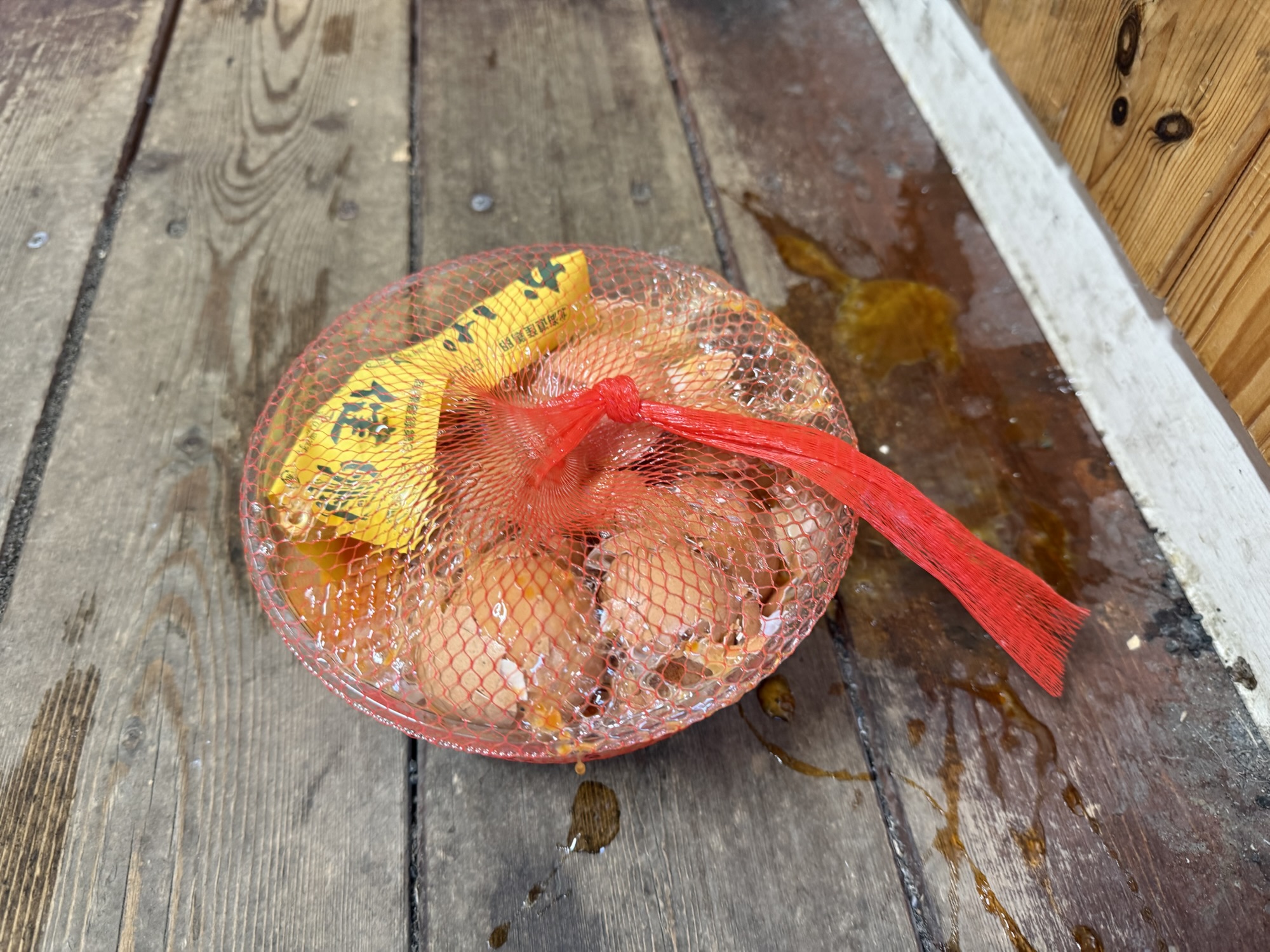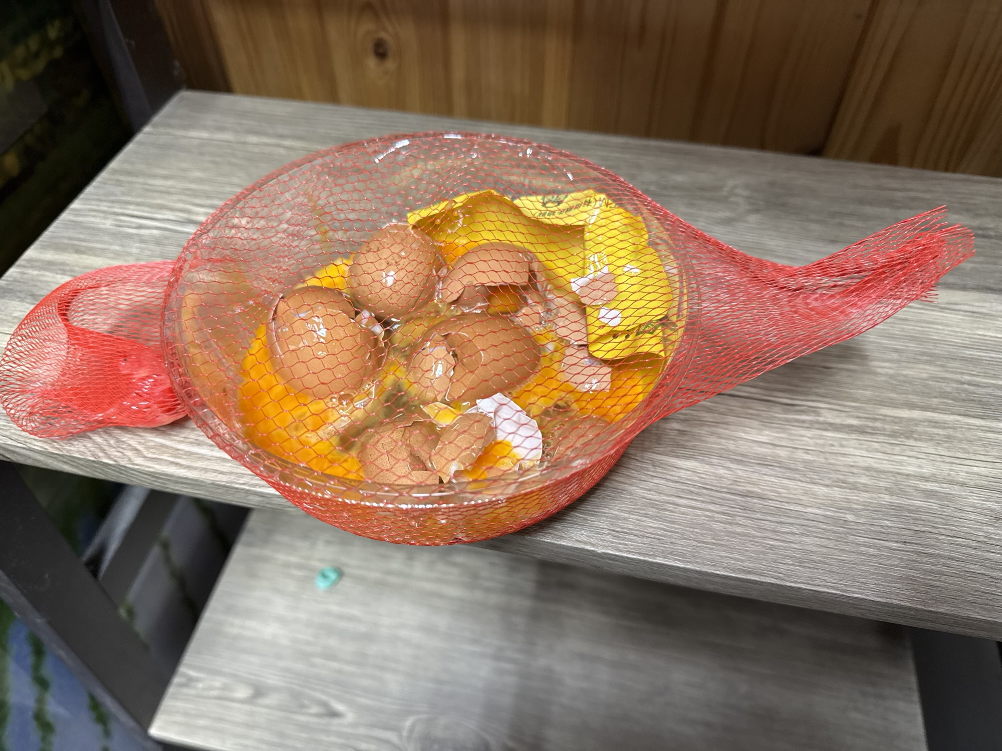 午後3時頃、自販機に卵の補充に行きました。ドアを開けて先ず目に付いたのが、明らかに人為的に破損した卵が、そのまま放置されていたのです。